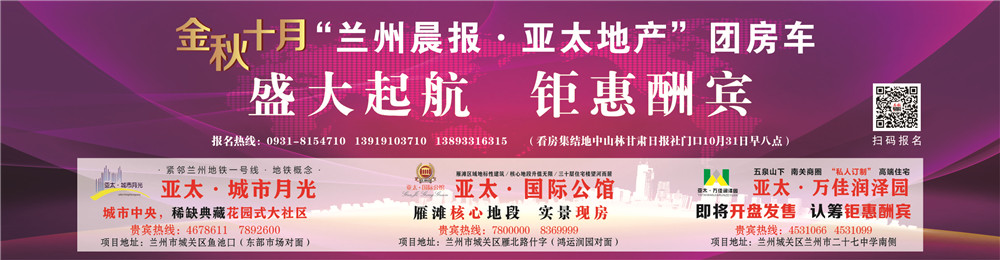 身为刚需一族 ,你是否对价格低的楼盘 ,质量和配套不定心 ,而配套好的品牌楼盘自己又嫌价格高 ,犹豫到现在还连续张望态度 。金秋十月 ,为了感恩宽大读者一直以来的支持和厚爱 ,本报通过与开发商进一步洽谈后 ,推出大型团房运动 ,以低于市场平均水平的内购底价回馈读者 。同时 ,兰州晨报团房直通车带您免费看房 ,一站式探盘 ,运动全程免费 。报名兰州晨报团房运动 ,让看房变得简单 。关注官方微信 ,获得最新运动信息 。席位有限 ,不尽早报名又待何时?