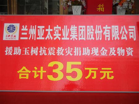 兰州k8凯发天生赢家一触即发实业集团股份有限公司抗震救灾献爱心援助玉树灾区捐款仪式