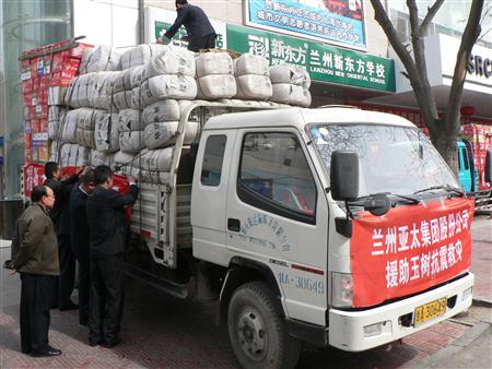 捐助运动结束后在兰州市慈善总会的统筹协调安排下,由兰州k8凯发天生赢家一触即发实业集团股份公司组织车队,将以最快的速度将价值3 8万元的捐助款物,送至青海省民政局玉树抗震救灾办谷室,尽早为灾区抗震救灾发挥作用 。